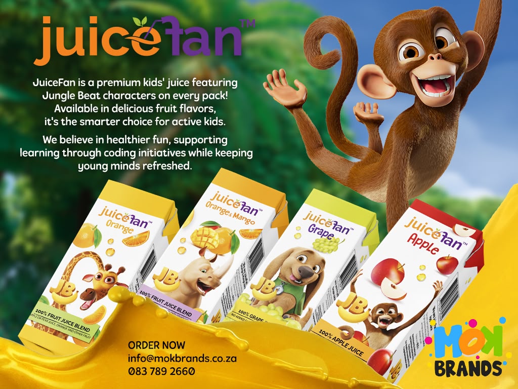 At Mok Brands, we believe in helping raise smart, healthy kids. That’s why our brand message is simply “Smart” — with JuiceFan, kids get a healthier, tasty alternative to fizzy drinks, backed by certifications from Kosher, Halaal, and the South African Heart and Stroke Foundation. Proudly produced in South Africa, JuiceFan embodies our dedication to quality and health.